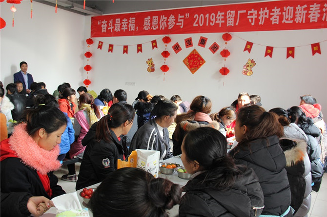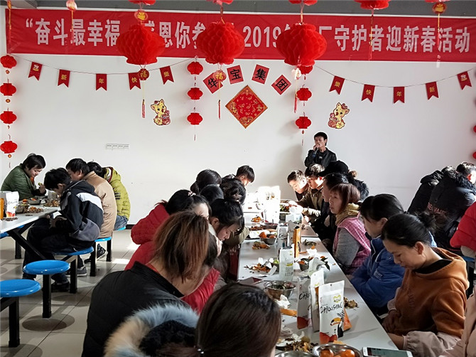 1月29日,華寶集團行政中心聯合黨工會以及積極參與的志愿者們為2019年留廠約60人的守護者舉辦迎新送溫暖活動,所有的志愿者都提前布置會場,拉彩旗、貼墻紙、掛燈籠、洗水果裝盤、分干果、包餃子以及維護現場持續等等,音樂響起來,吃著干果,話家常,善歌者唱歌,善舞著跳舞,活動現場氣氛熱烈,晚飯不僅有水餃還有紅燒肉,讓所有的參與人員及留守員工感受到家的溫馨、年的味道,幸福滿滿!